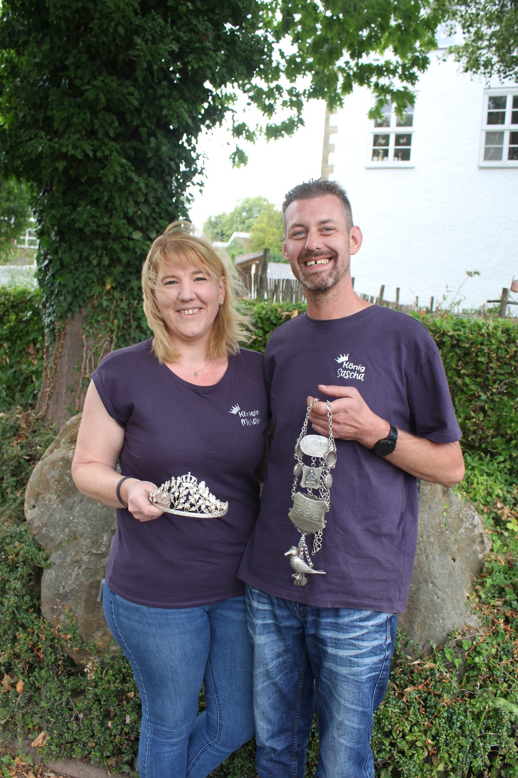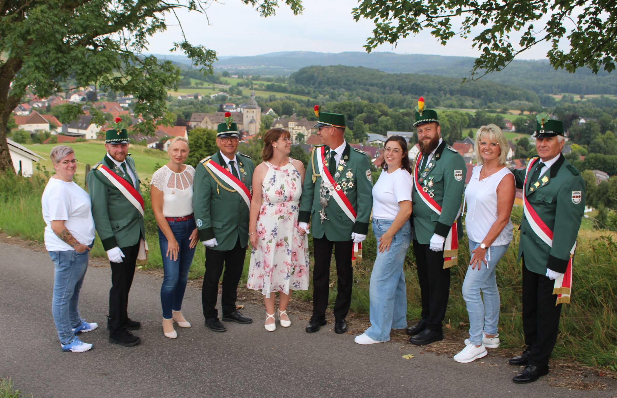 Unterstützt wird das Königspaar von einem ebenso herzlichen wie feierfreudigen Hofstaat: Maria und Markus Pastoors, Valerie und Manuel Schröter, Christina und Rene Flore sowie Heike und Horst Adamski stehen ihnen zur Seite – bereit für ein unvergessliches Fest.
