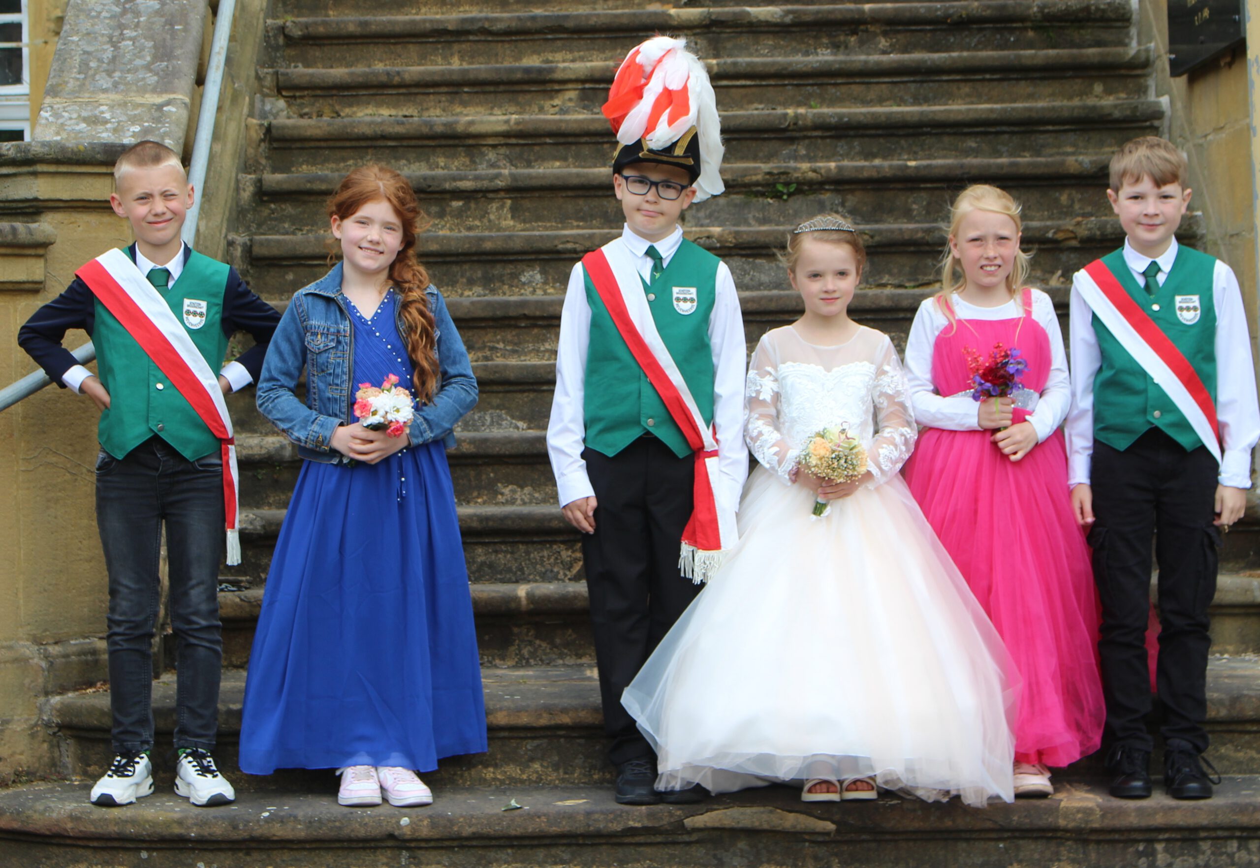 Das Bambini Königspaar, Antonia Marley und Nikolas Vogt, mit ihrem Hofstaat Marie Röhrig und Max Marlon Meyer, sowie Emilia Smith und Maxim Schuchart. Das Nethe Königspaar Lea Wiegard & Xaver Koolmann mit ihrem Hofstaat Marla und Leonor Clarke sowie Josephin Koolmann und Philipp Schwarz. Unsere diesjährige Kinderfahnenträgerin Isabella Klostermann wird von Marc Langner und Lasse Michels begleitet. Alle sind herzlich eingeladen am Sonntag, 11. August 2024 um 15.15 Uhr an der Ehrenmalfeier teilzunehmen, um anschließend auf dem Festplatz noch einige schöne Stunden mit ihnen zu verbringen.