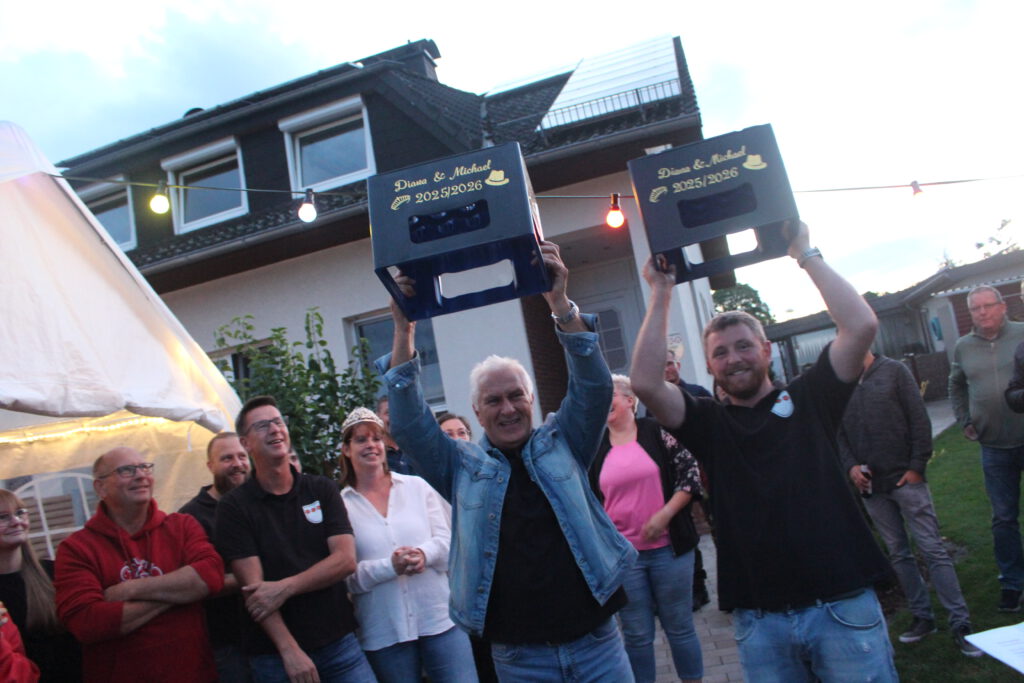Unterstützt wird das Königspaar von einem ebenso herzlichen wie feierfreudigen Hofstaat: Maria und Markus Pastoors, Valerie und Manuel Schröter, Christina und Rene Flore sowie Heike und Horst Adamski stehen ihnen zur Seite – bereit für ein unvergessliches Fest.